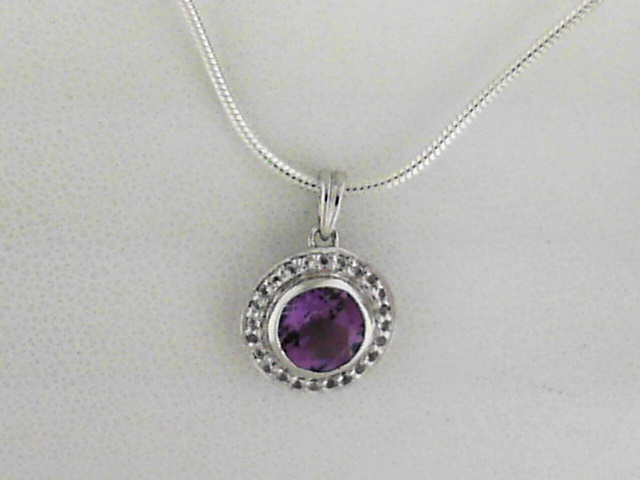 Sterling Silver Amethyst Pendant .95ct and white Topaz .09ct