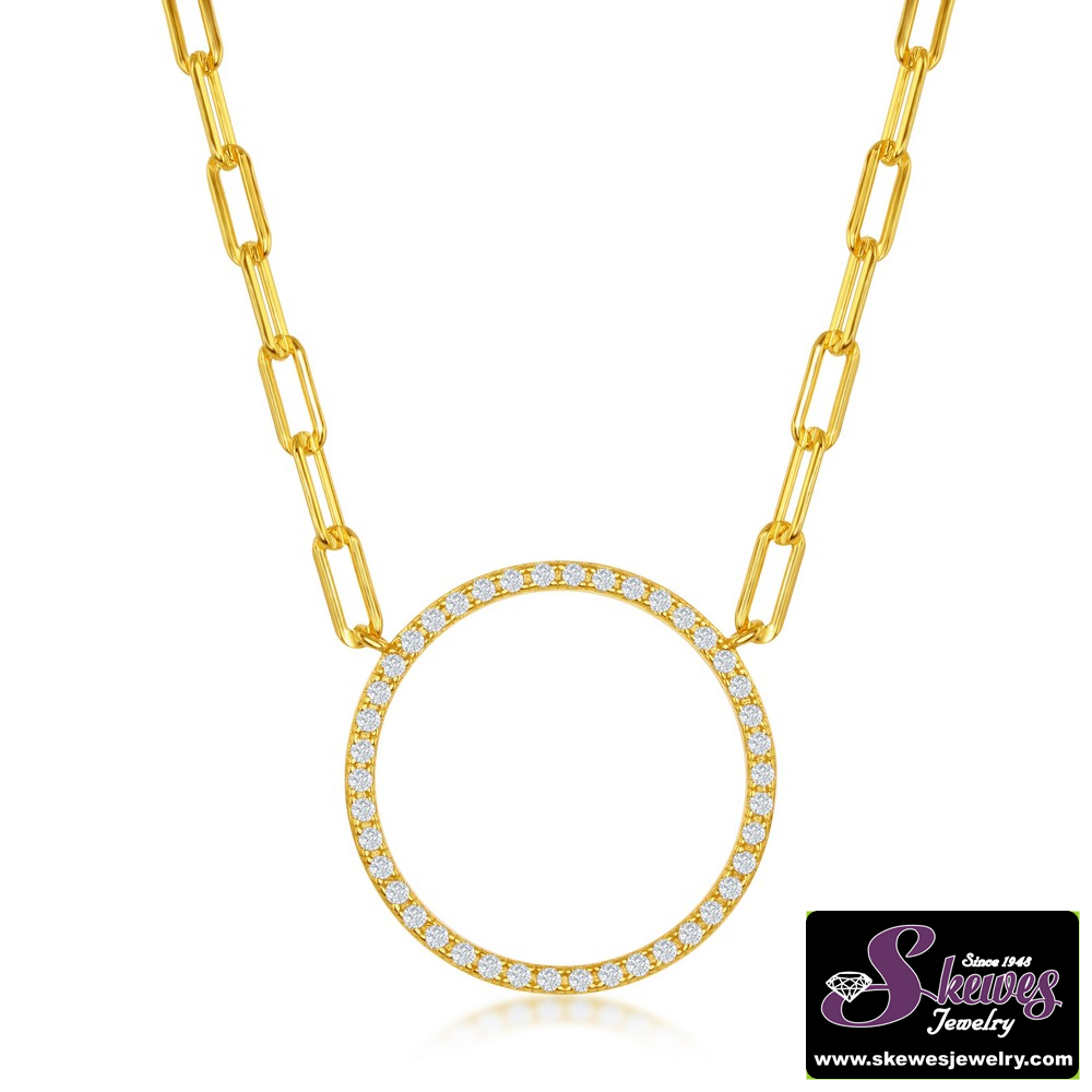 Elevate your style with this chic Sterling Silver and gold-plated necklace featuring a delicate paperclip chain and a captivating cubic zirconia circle pendant. The combination of precious metals and sparkling accents creates a timeless and sophisticated look perfect for any occasion.