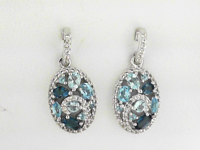 Sterling Silver Blue Topaz 1.94ct Earrings with White Topaz .39ct