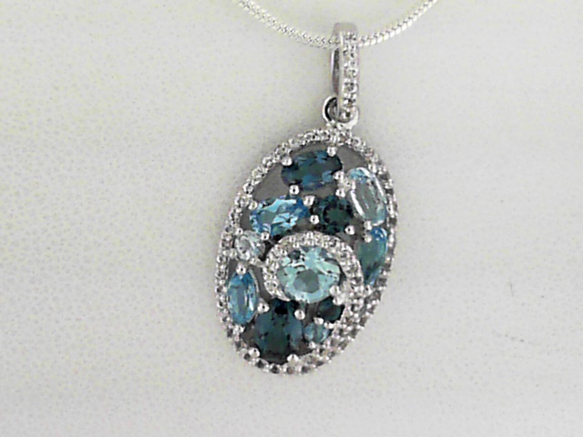 Sterling Silver Blue Topaz 2.25ct Pendant with White Topaz .26ct