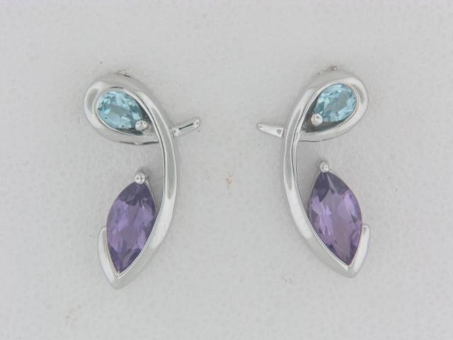 Sterling Silver Blue Topaz and Amethyst Earrings