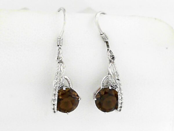 Sterling silver Cognaz Quartz 1.90ct earrings with White Topaz .10ct