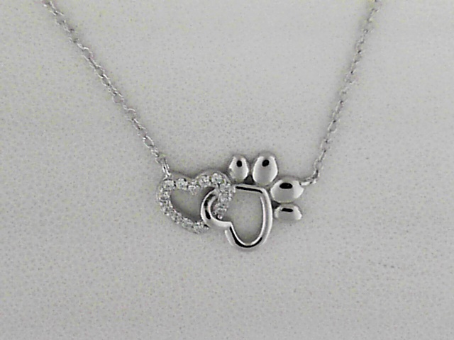 Elevate your style with this captivating Sterling Silver necklace adorned with sparkling Cubic Zirconia heart and paw print charms. A timeless piece that adds a touch of elegance to any outfit.