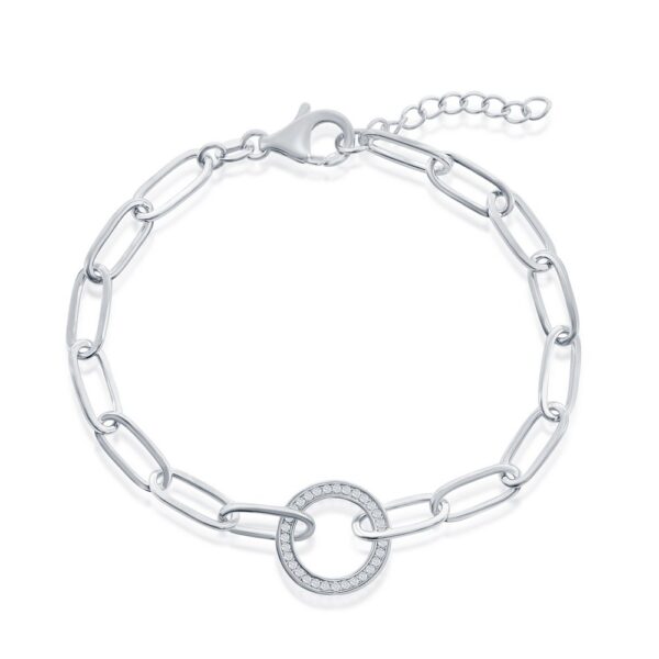 Sterling Silver Cz Circle Paperclip Bracelet – 001-640-00376