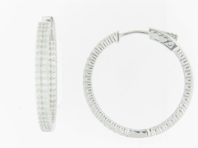 Elevate your look with these stunning Sterling Silver hoop earrings featuring a double row of shimmering cubic zirconia stones. The polished finish and classic design make these earrings a versatile accessory for any occasion.