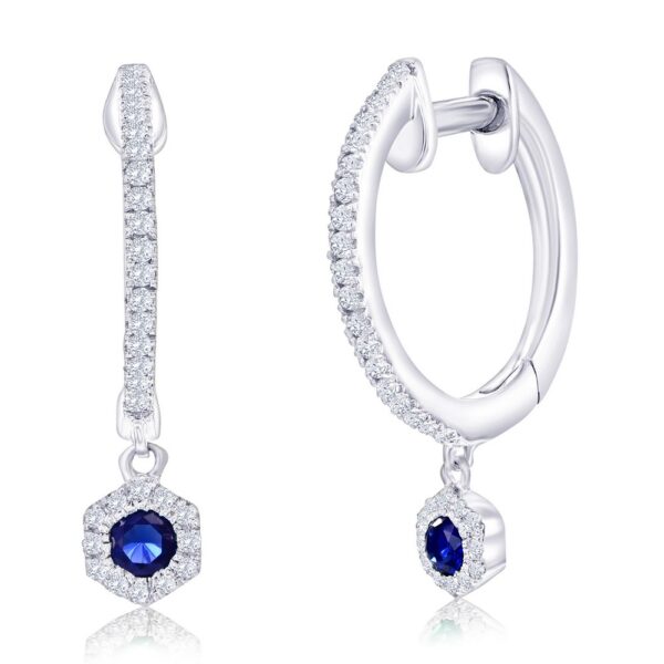 Sterling Silver Lab Grown Sapphire Hexagon Chain And Natural Diamond Huggies Dia TW .15