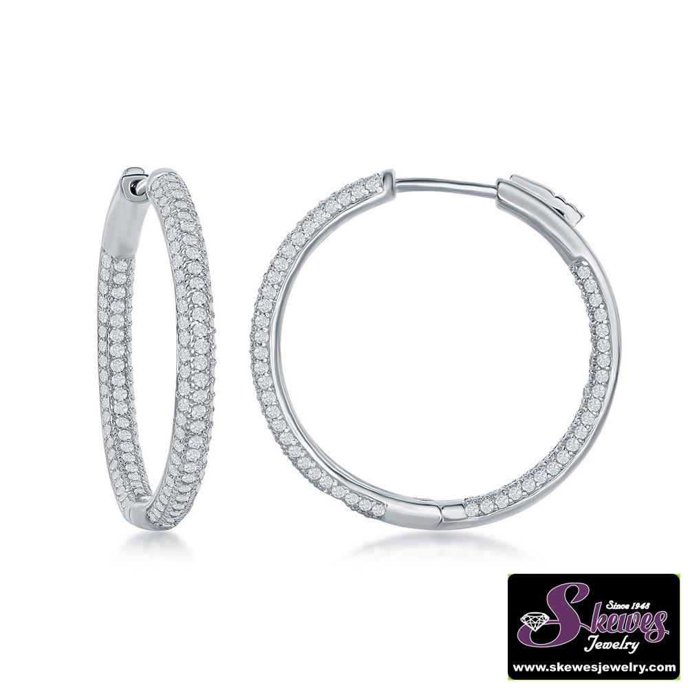 Sterling Silver Micro Pave CZ Hoop Earrings