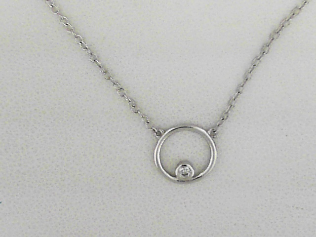 Elevate your style with this stunning Sterling Silver necklace featuring an open circle design and a bezel-set cubic zirconia stone. The sleek and modern look makes it a versatile accessory for any occasion.