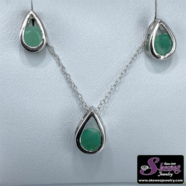Sterling Silver Pearshaped Earrings And Pendant Set With Round Genuine Emerald – 001-230-01358