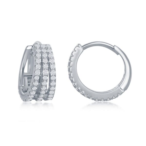 Sterling Silver Triple Row CZ Small Hoop Earrings