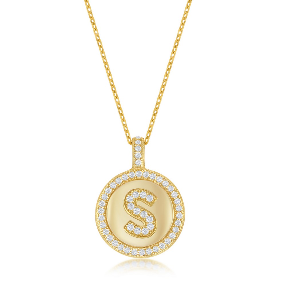 Elevate your style with this stunning Sterling Silver pendant featuring a white gold plated finish and a micro pave cubic zirconia circle design. A timeless and versatile accessory.
