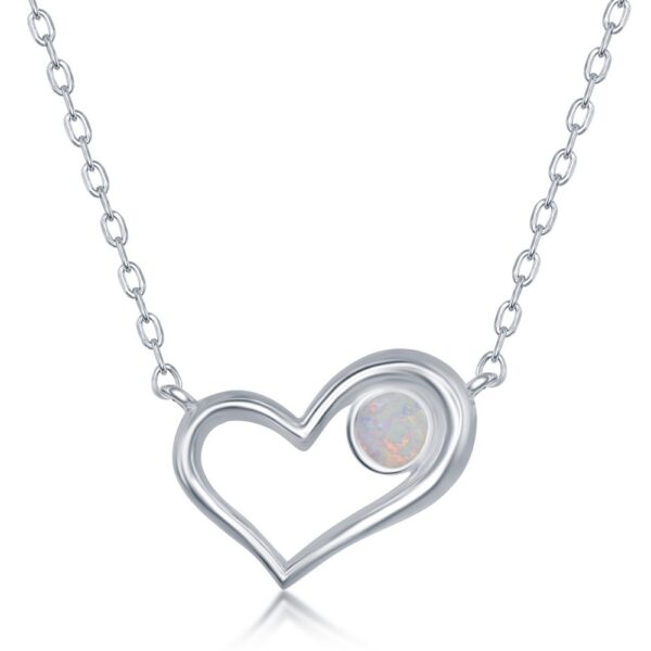 Sterling Silver White Inlay Opal Cirlce open Heart Necklace