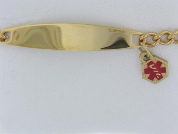 This versatile medical ID bracelet features a sleek, small link design in a stylish yellow mixed metal finish. Ideal for everyday wear, it provides essential medical information discreetly.