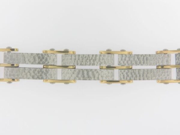 Two Tone Steel,Gold Hammered Modern Bracelet. 8 1/4 inch long with 1/2 inch Self-Adjustable Link