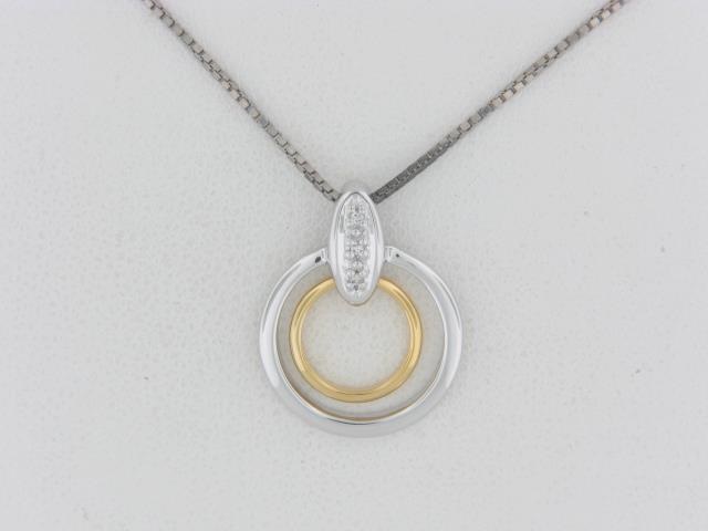 Elevate your style with this stunning Two-Tone Sterling Silver Pendant. Featuring a double circle design with a delicate diamond accent, this pendant adds a touch of elegance to any outfit.