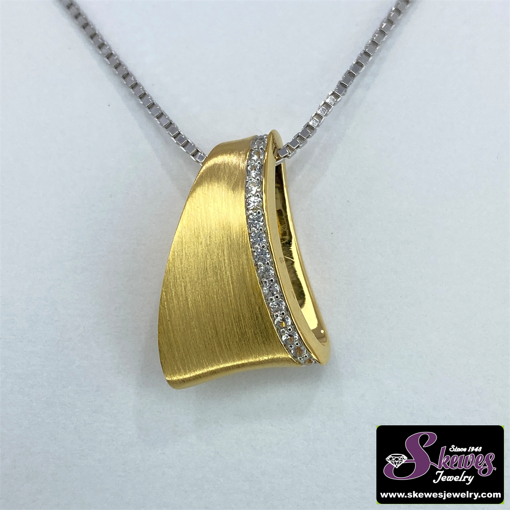 Elevate your style with this captivating Two-Tone Sterling Silver Pendant featuring a dazzling White Sapphire. Crafted with meticulous attention to detail, this pendant is a timeless accessory that will complement any outfit.
